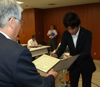 市役所で認定式があり、石川勝行市長が「地域経済や景気の回復のため、産業界と行政が一体となった取り組みが必要」とあいさつし、認定証を交付した。