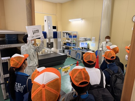 この度も4つのグループに分かれていただきまして、主に金属製品を加工する作業場をご覧いただき、その後に実際に簡易ノギスを使用した検査測定もご体験いただきました。