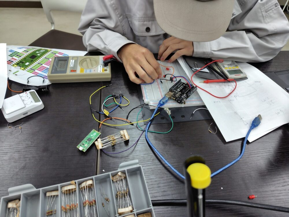 電気電子部門では最新のAI技術にも触れ、電子回路や制御等、電気につて学んでいただき、