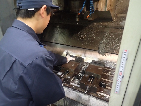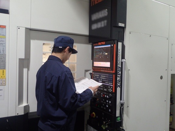 精密加工部門では金属機械加工をプログラミングからマシニング(加工機)の操作を体験いただき、